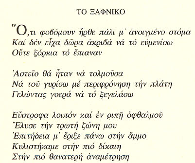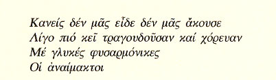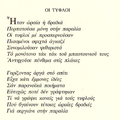 Από τη συλλογή Θαλασσινό ημερολόγιο (1981) Από τη συλλογή Μετανάστες του εσωτερικού νερού (1985)