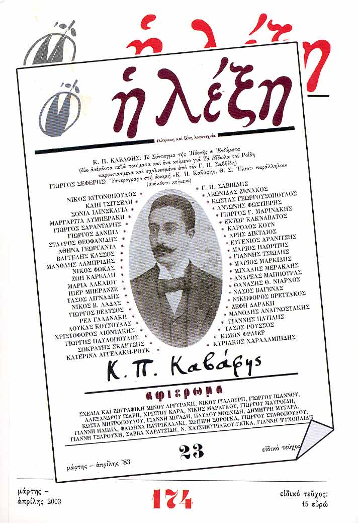 Κείμενα: Σημείωμα της σύνταξης "Καβάφης ο τέλειος" Νίκος Εγγονόπουλος "Υστερόγραφο στη δοκιμή « Κ.Π. Καβάφης, Θ.Σ. Έλιοτ· Παράλληλοι»" Γιώργος Σεφέρης (Παρουσίαση:Γ.Π. Σαββίδης) "Ούτος εκείνος;" Αντώνης Φωστιέρης "Κ.Π. Καβάφης" Ευγένιος Αρανίτσης "Η πεζολογία στη σύγχρονη ποίηση και ο Καβάφης" Μανόλης Λαμπρίδης "Νύξεις" Ζωή Καρέλλη