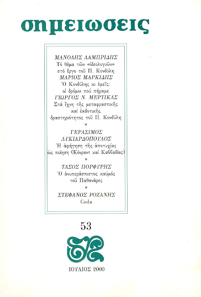"Ο Κονδύλης κι εμείς: οι δρόμοι που πήραμε" Μάριος Μαρκίδης "Ο ανυπεράσπιστος καϋμός του Παθανάρες" Τάσος Πορφύρης